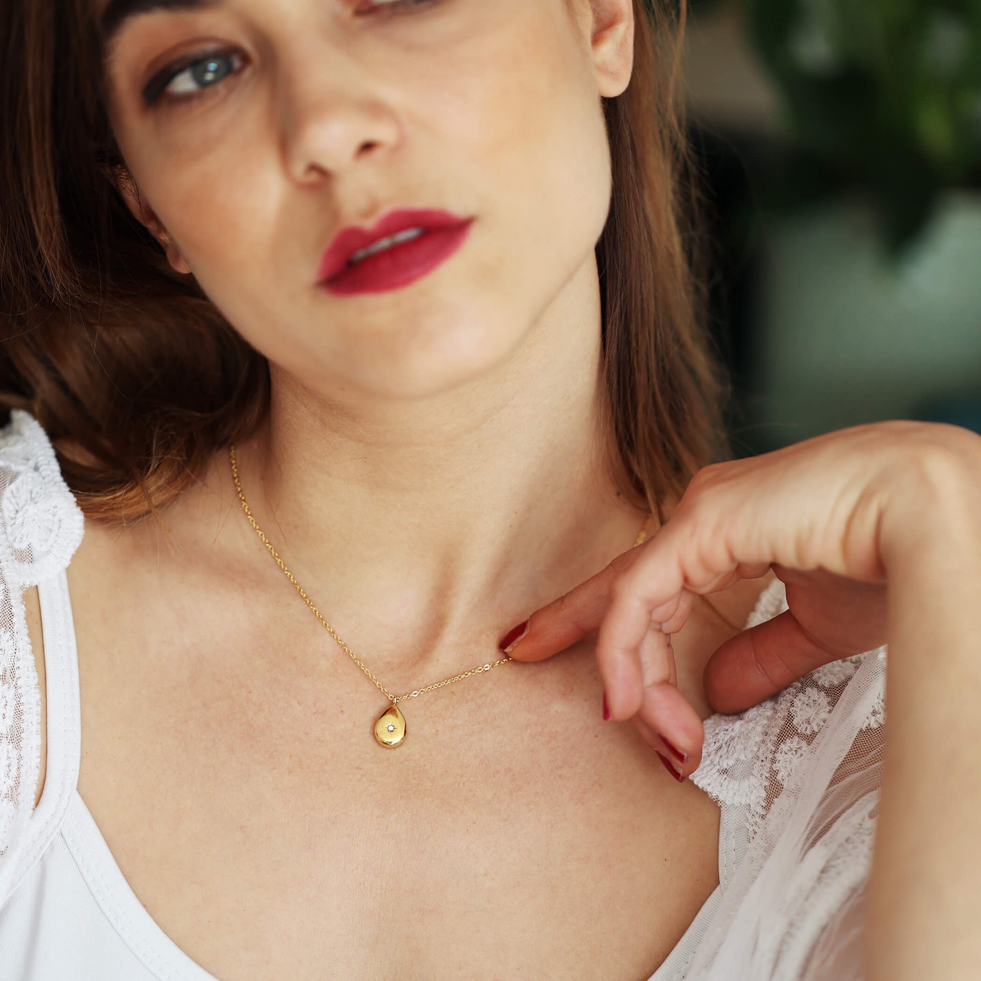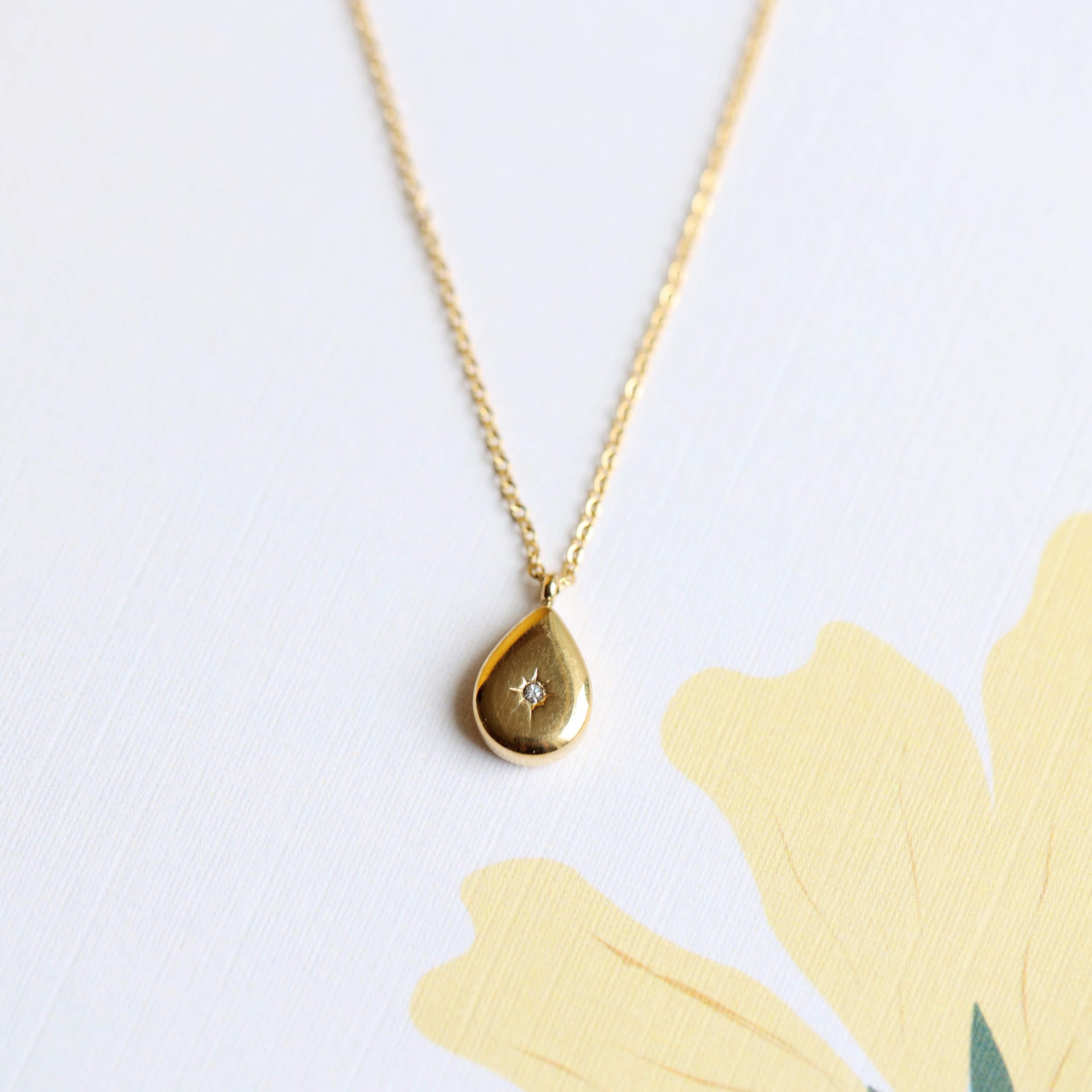 Treat yourself or surprise someone special with the Single Teardrop Halo CZ Stone Necklace – where sparkle meets sentiment!