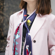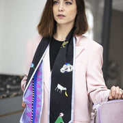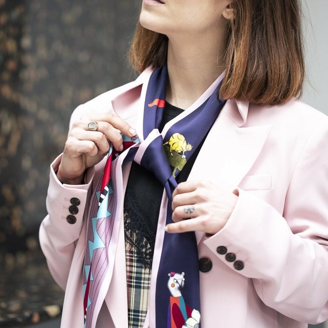 A slim scarf with two distinct styles, one side of this features a collection of quirky hand drawn animals in bold pop art colours. Flip it over and you have a vibrant and fun zigzag and stripe design, so that however you style this it's sure to add to your look.