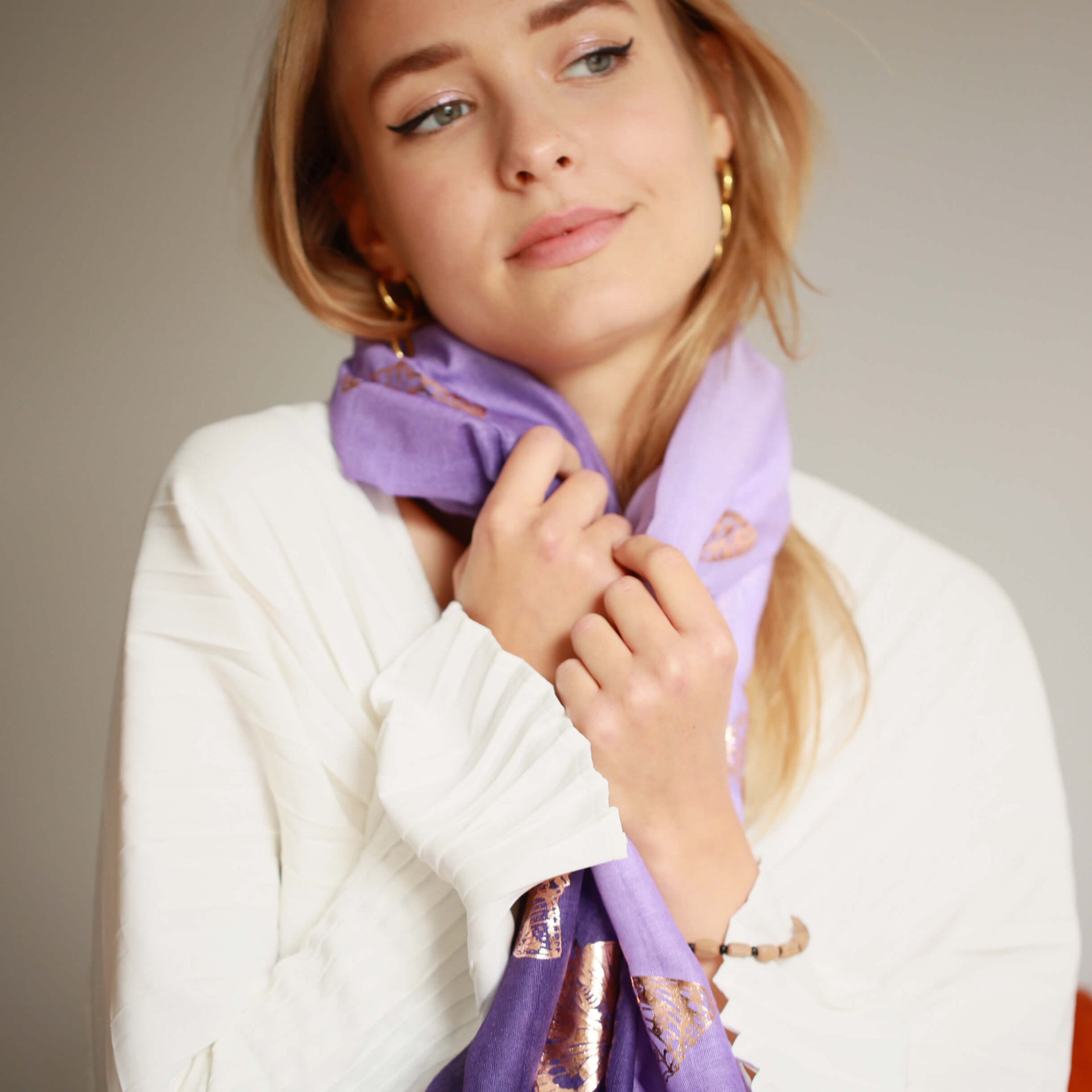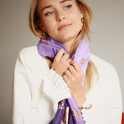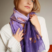 Wrap yourself in elegance with our British Butterflies Rose Gold Foil Scarf! Available in stunning blue or purple ombre, this scarf is adorned with a dazzling rose gold foil butterfly design, hand-drawn in our London studio. It's the perfect blend of sophistication and whimsy, making it a standout accessory for any outfit.