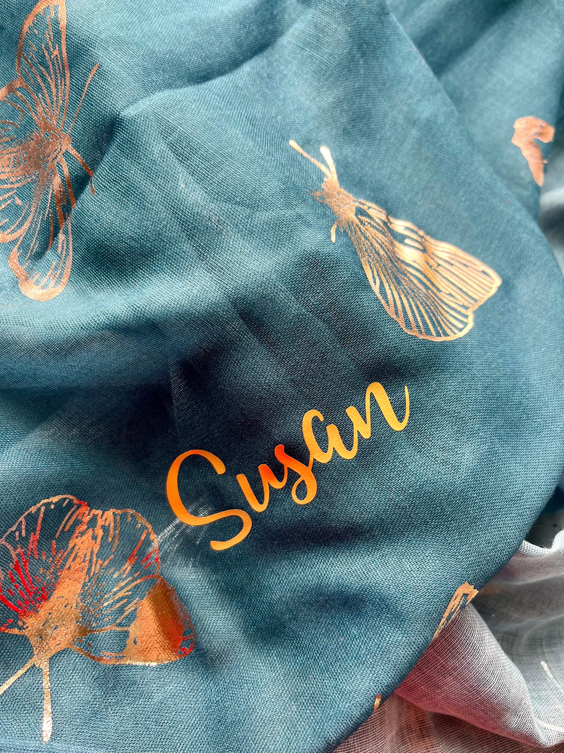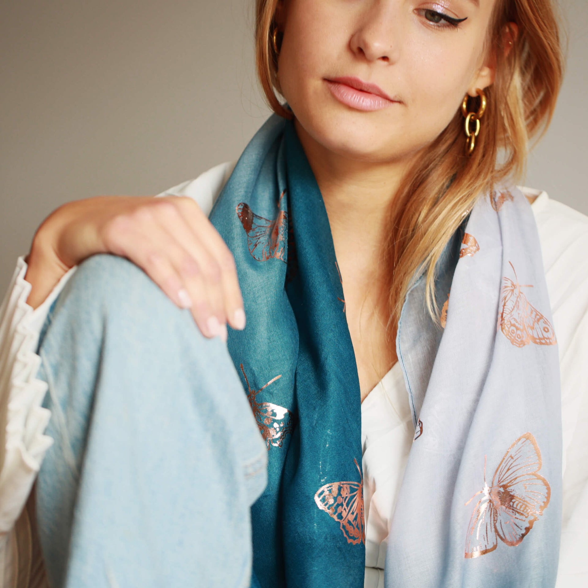 Whether it’s for a birthday, Christmas, or just because, this scarf is sure to delight and enchant. Treat yourself or someone you love to the beauty and charm of our British Butterflies Rose Gold Foil Scarf – it’s a little piece of luxury you’ll treasure forever!