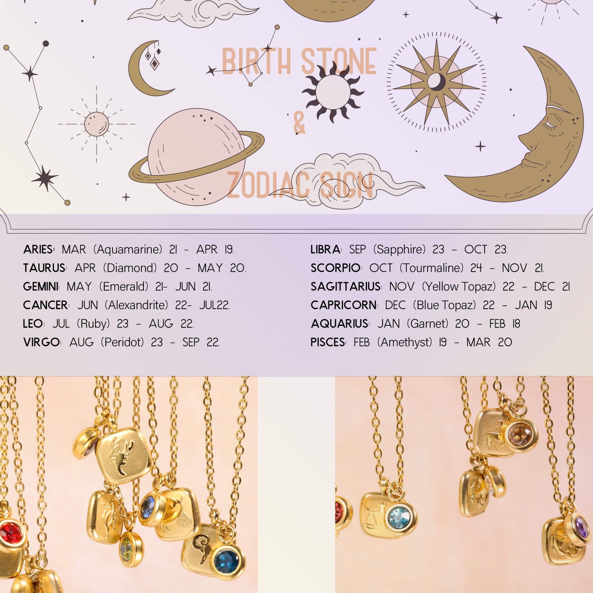 Constellation Star Sign Zodiac Birthstone Necklace