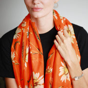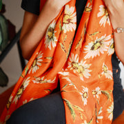 Embrace the essence of spring with our Orange Sunflower Motif Scarf – a must-have accessory that brings sunshine wherever you go.