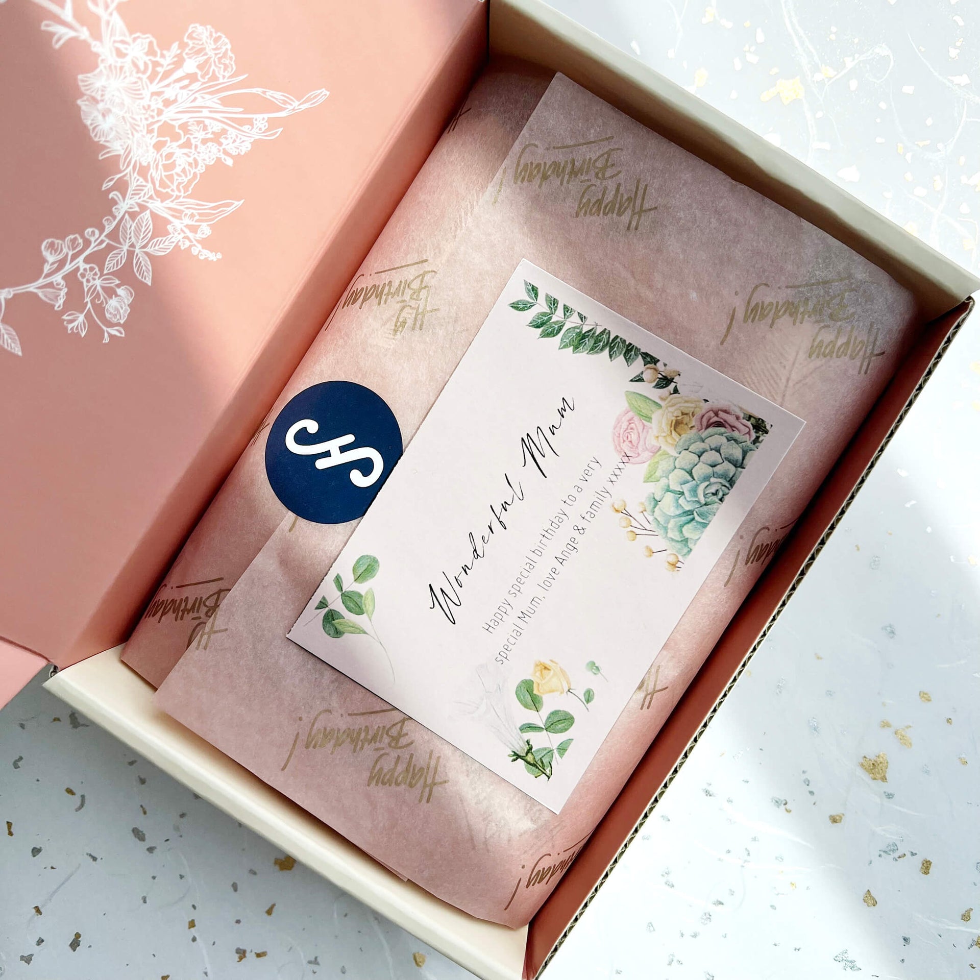 Add a sprinkle of magic with our glitter foil name personalisation. Whether it's Mum, Grandma, or your best friend's name, this personalised touch makes it truly theirs. Looking to make it extra special? Opt for our gorgeous gift box, complete with themed tissue paper, turning your gift into an unforgettable unwrapping experience.