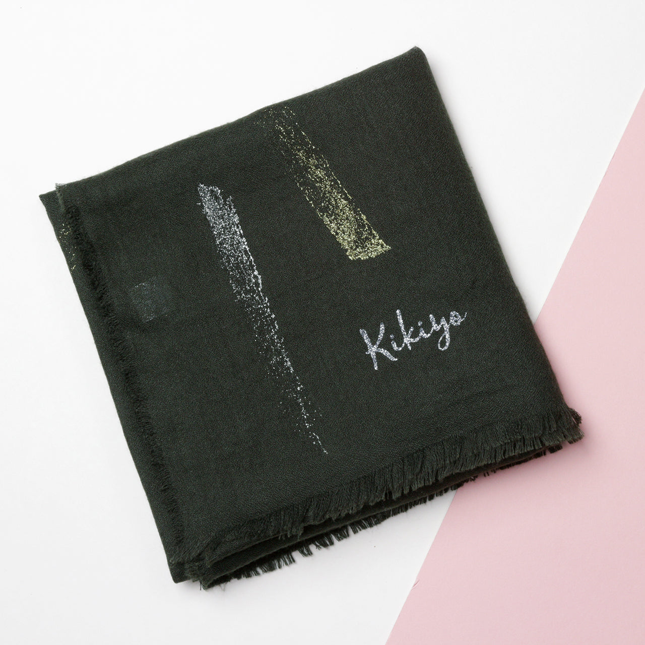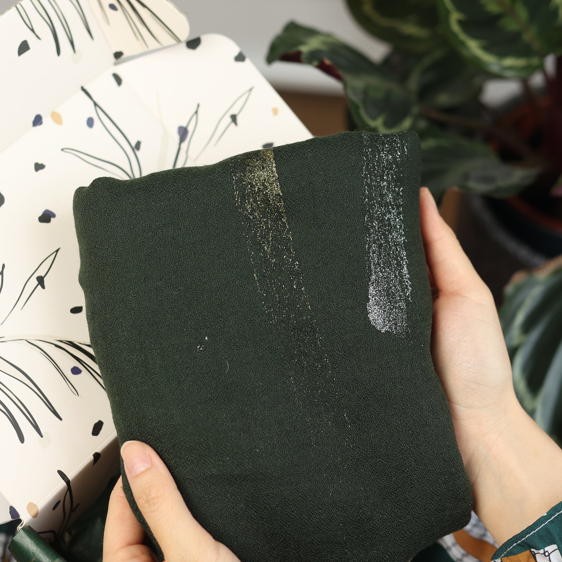 Introducing our stunning Personalised Brush Stroke Glitter Hand Painted Scarf, the perfect blend of elegance and individuality! Available in sophisticated olive green or timeless grey, this scarf isn't just an accessory—it's a statement piece. Each scarf is lovingly hand-painted with unique brush strokes, giving it a one-of-a-kind charm.