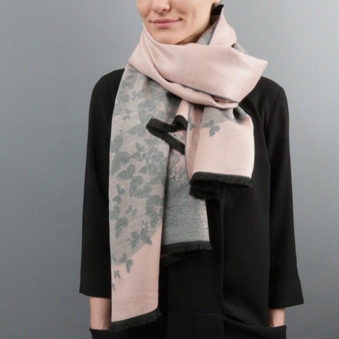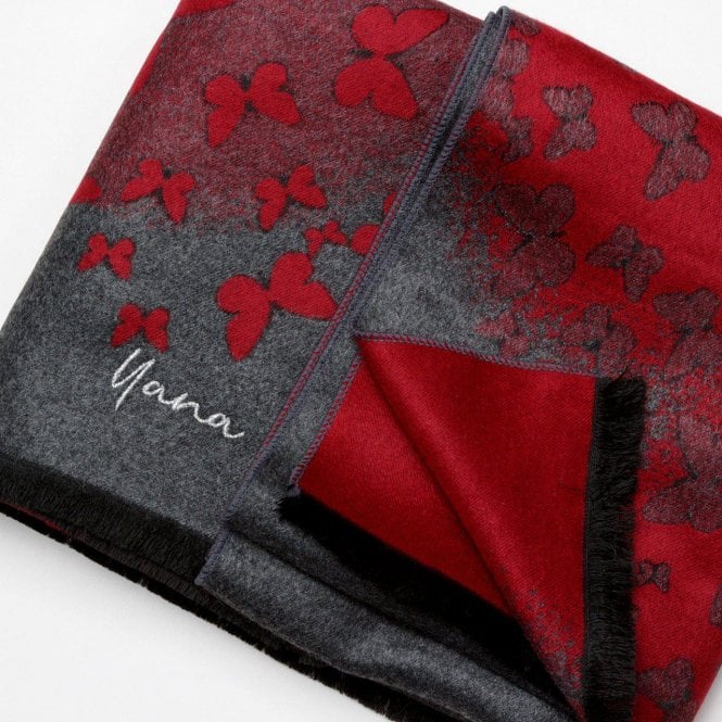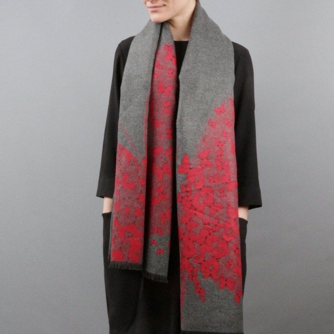 A really luxury cashmere blend scarf that effortlessly jazzes up a plain winter coat, woven with abstract butterflies.