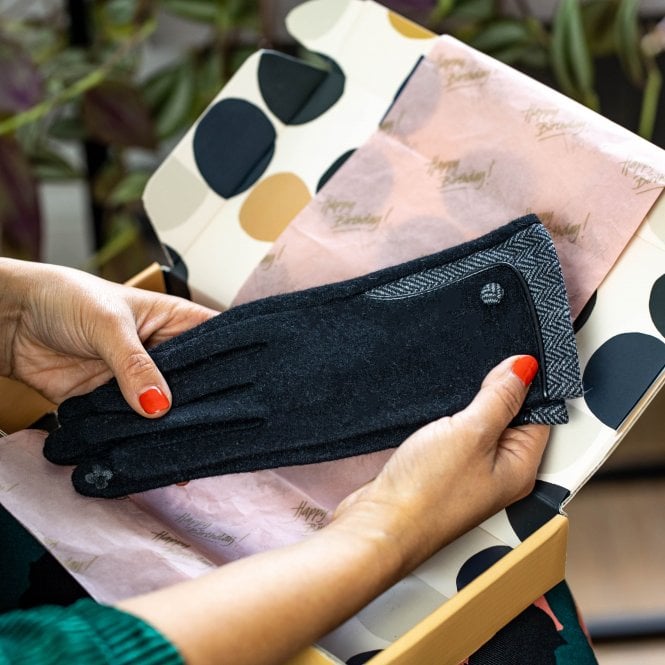 Elegant and practical, these touchscreen gloves feature herringbone cuffs and a floral design on the fingertips, and will keep you warm and looking stylish whatever the weather. They are available in a grey, lilac, soft pink, navy blue and a timeless black colour.