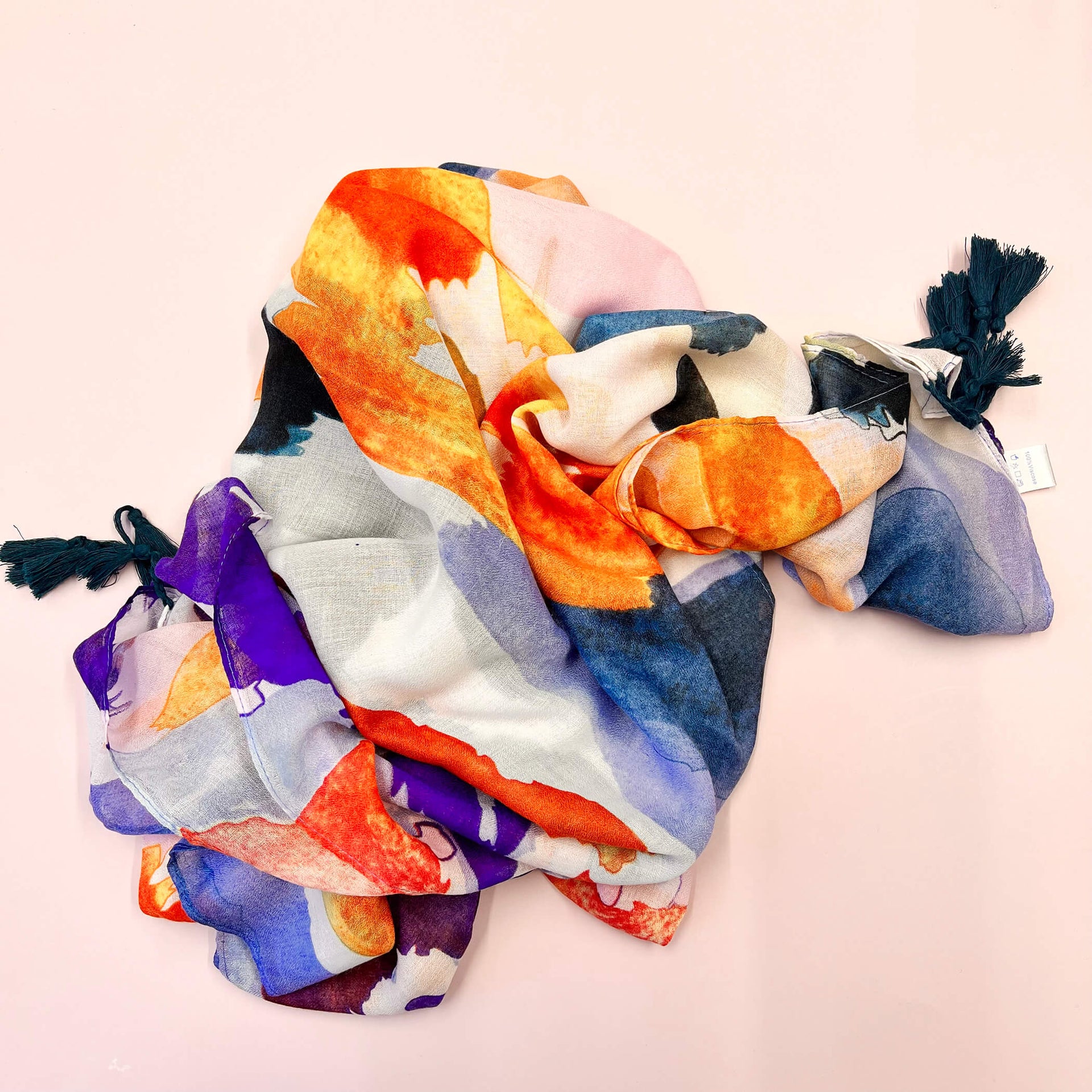 Introducing our Personalised Watercolour Rainbow Scarf, a soft draping shawl perfect for a pop of colour in spring and summer.