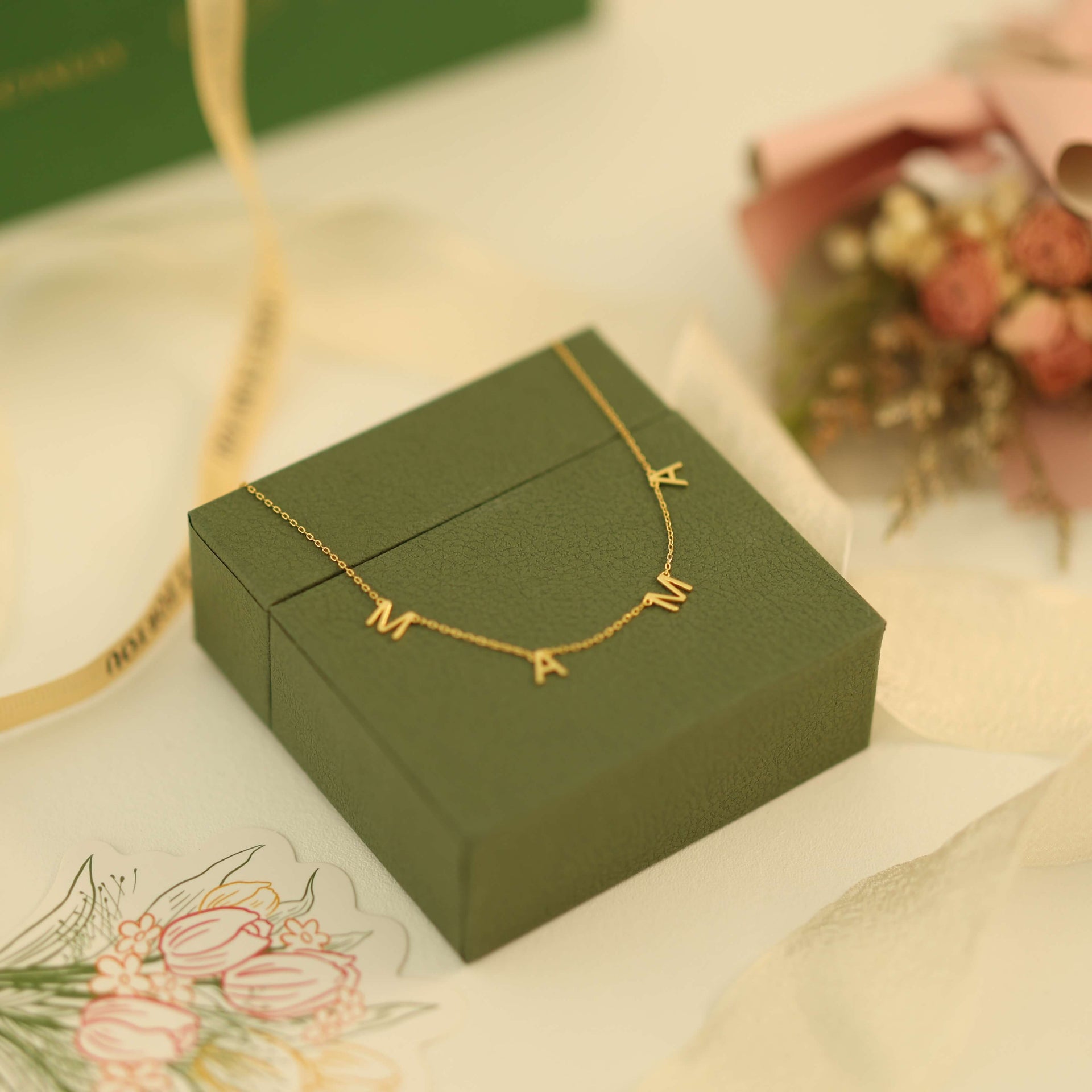 Want to make the gift extra special? You can choose to add a lovely gift box, complete with a personalised card. It's a thoughtful touch that makes this already stunning piece feel even more meaningful. Classic, elegant, and oh-so-charming—this necklace is a must-have for every mum!
