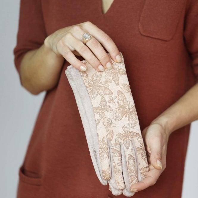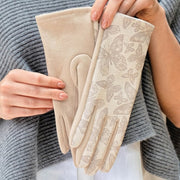 Detailed butterfly adorn the back of the hand in a slightly different shade, adding a subtle and delicate finish to these gloves.