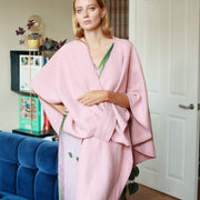 Made from a thick brushed acrylic fabric, our poncho ensures you stay warm in chilly weather. What sets it apart is its unique pull-through secure fit around your lower waist, effortlessly transforming it into an open-front oversized coat with a loose belt.